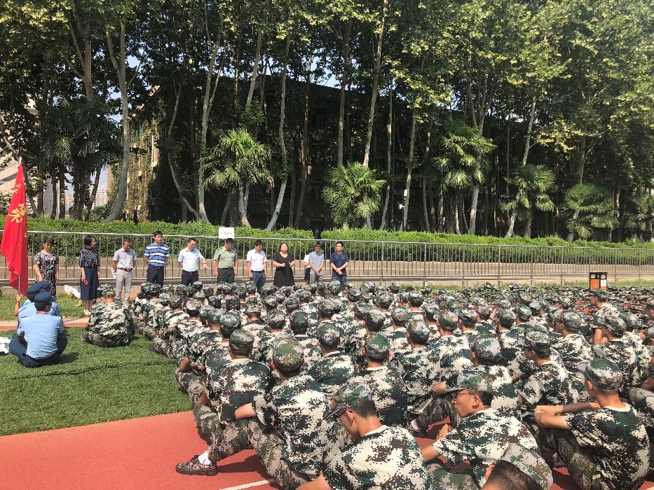 8月28日上午,生命学院领导和老师来到军训现场,看望慰问正在参训的2018级本科生和承训教官。