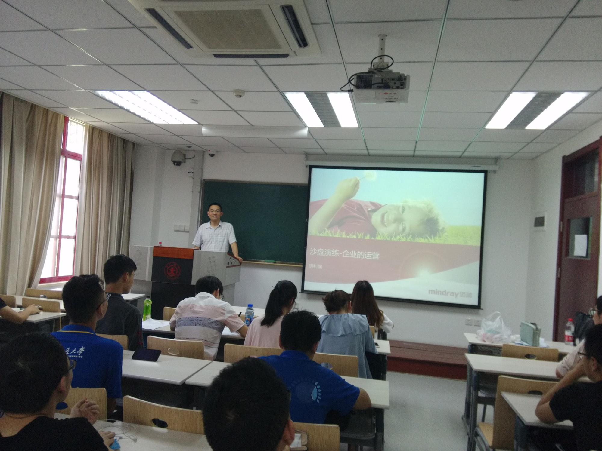 2017年7月10日下午中2-2248教室异常热闹,迈瑞西安研究院总经理明利强先生和他的同事郄会芳给学生带来了一场别开生面的“企业沙盘运营演练”活动。生命学院生物医学工程专业大二学生参加了此次活动。