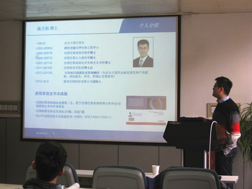 报告结束后,施博士详细耐心的解答了同学们以及老师提出的问题,主要包括创业,科研,学术,留学这几个方面。最后所有人合影留念。整个报告会信息含量丰富,内容新颖,由浅入胜、由表及里地介绍了从细胞逆运输到快速检测技术的实现,受到了师生们的一致好评。特别是后半部分“如何创业”的报告,从自身以及行业内的例子入手,让同学们获益匪浅。在回答问题的环节,生命学院大类招生一年级的几位同学就生物工程专业的专业选择和创业等提问。报告持续到中午11点半结束。