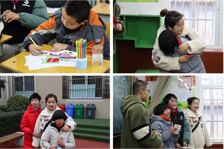 团队成员还陪伴孩子们做体操。随着音乐的旋律,孩子们蹦蹦跳跳,活动身体,抖擞精神。特教学校老师说:“这是一群非常善良和可爱的小孩子,在先天不足的条件下依旧顽强生长,他们也是一群需要陪伴和关爱的小孩子,希望社会各界能在有余力的情况下对他们多一些关爱和照顾。”
