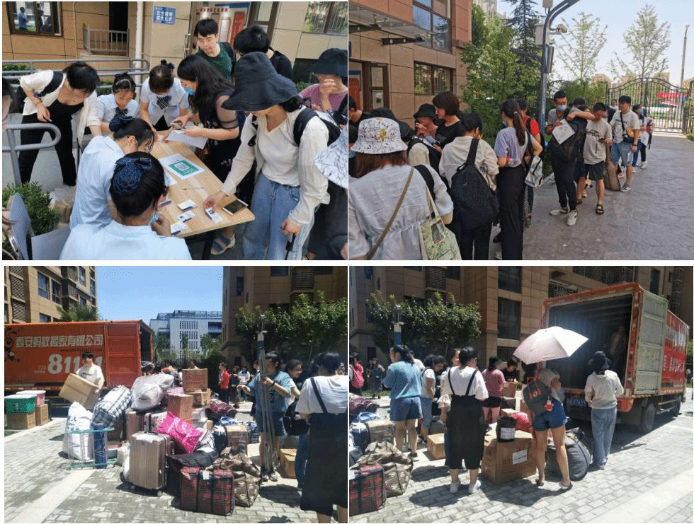 送走连续的阴雨天气,迎来了晴朗天空。在早上清新的空气中,同学们按计划早早地将行李搬运至宿舍楼下指定地点。9点30分,行李车准时到达各宿舍楼下,同学们按照计划将行李搬运到卡车上。搬运过程中,各位同学互帮互助,体现了生命学子良好的精神风貌。
