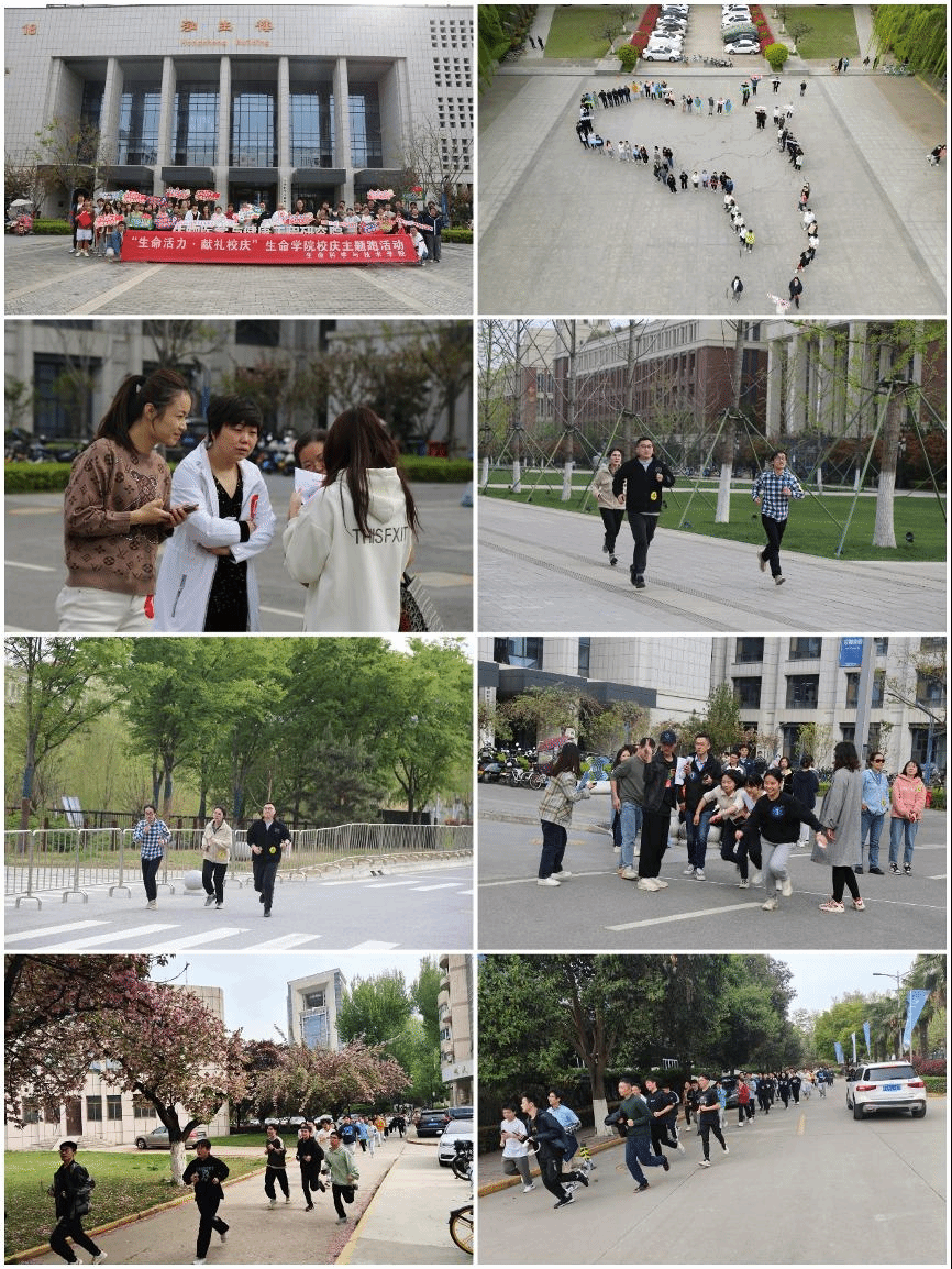 4月7日下午,生命学院在两校区开展“生命活力·献礼校庆”纪念跑活动,以校史快问快答、接力跑的形式展现学院师生的昂扬活力。127名本科生在兴庆校区绕校一周,用整齐的步伐丈量梧桐道,汇聚成中国地图。127名研究生在创新港校区接力奔跑,以你追我赶的比拼与时间赛跑,跑出生命学院的加速度。