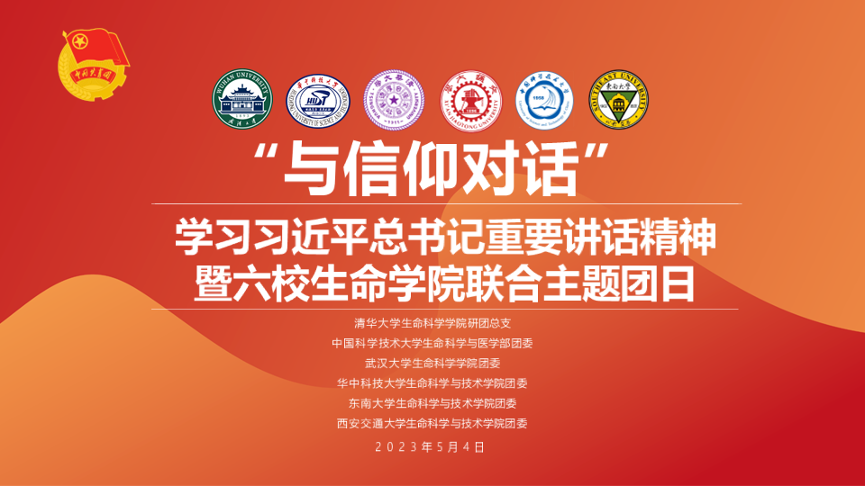 5月4日下午,我校与清华大学等五校联合开展“与信仰对话”——学习习近平总书记重要讲话精神主题团日活动。清华大学、中国科学技术大学、武汉大学、华中科技大学、东南大学、西安交通大学的相关学院团组织负责人、团员代表共100余人参加。