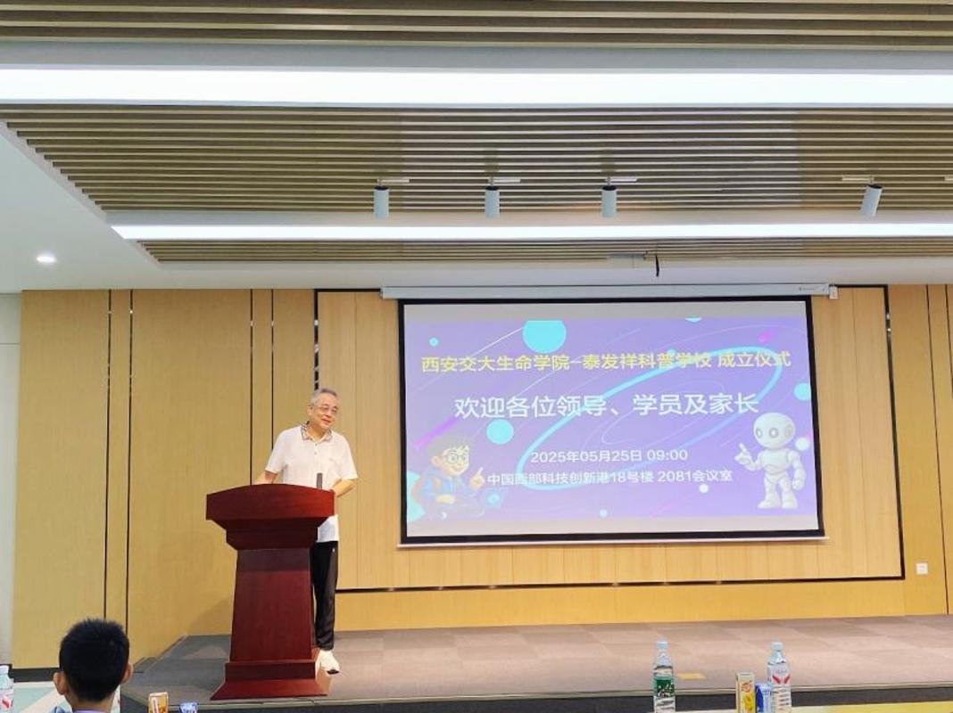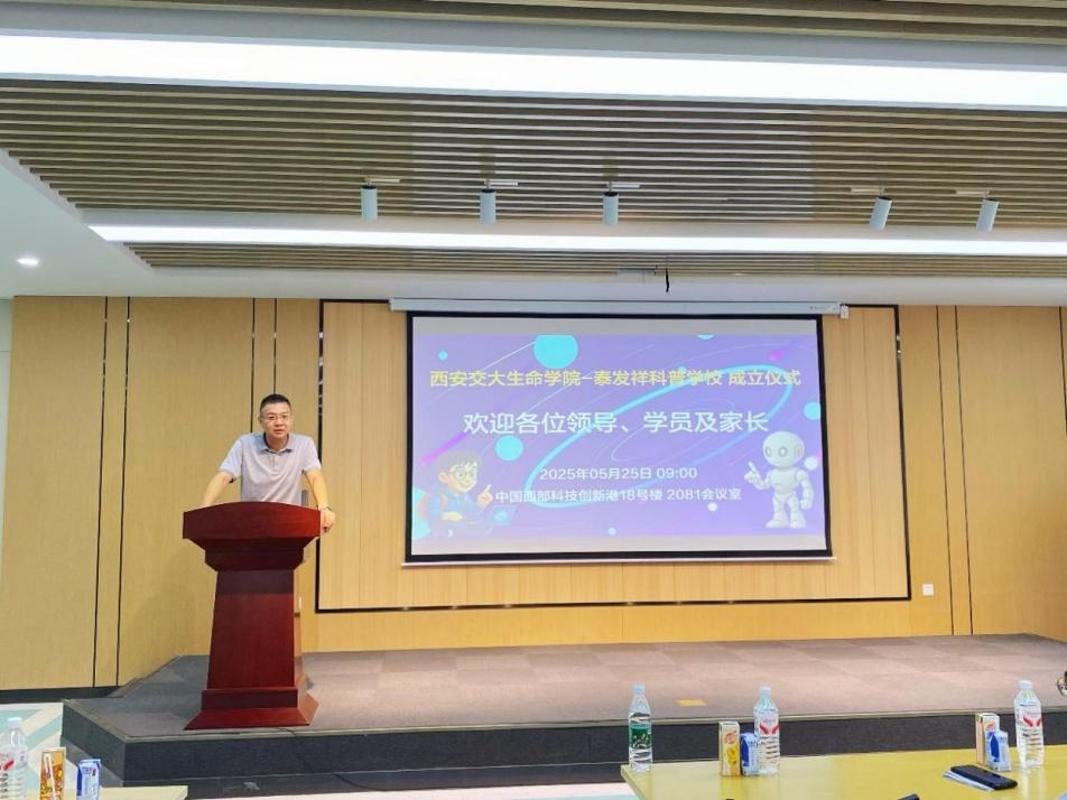 5月26日上午,西安交通大学“生命学院-泰发祥科普训练营”启动仪式举行。西安交通大学党委常委、宣传部部长、统战部部长成进,泰发祥集团创新发展研究院院长朱聿晟、陕西省科技厅社发处副处长胡斌参加活动。活动由科普训练营发起者、西安交通大学生命学院院长徐峰教授主持。