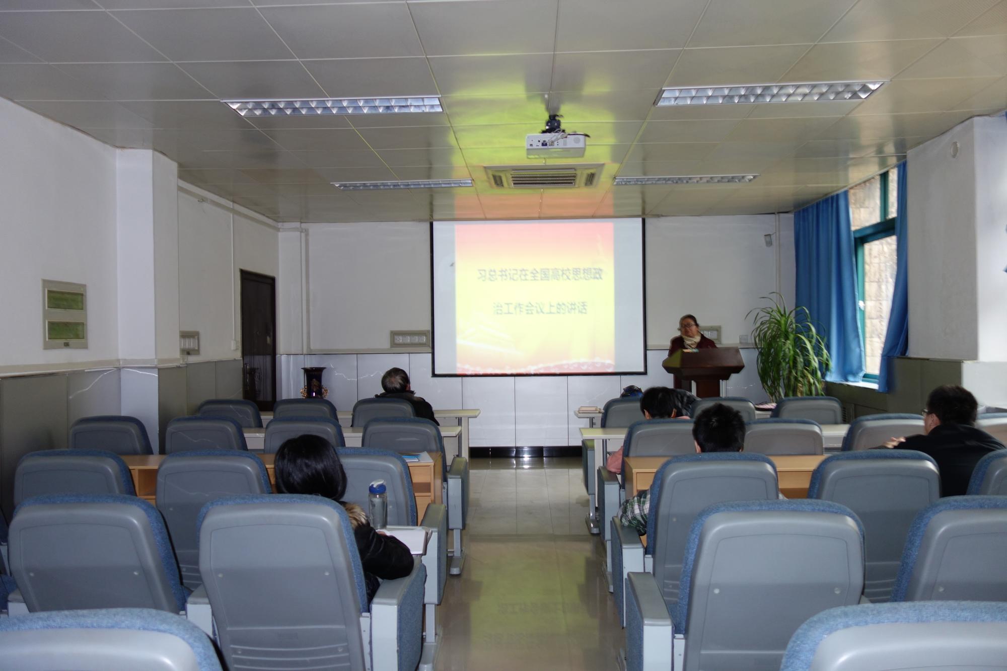 李剑君书记带领大家共同学习了习总书记的重要讲话内容,她指出此次会议对于高校更好地完成立德树人的重要使命具有重大意义,充分体现了以习近平同志为核心的党中央对高校思想政治工作的高度重视,为做好新形势下高校思想政治工作、推动高等教育深化改革、培养社会主义合格的建设者和接班人提供了强大的精神动力。思想政治工作要贯穿教育教学全过程,实现全程育人、全方位育人,努力开创我国高等教育事业发展新局面。她还强调大家要做好党员的先锋模范作用,加强学生学风建设,培养优秀的人才。大家对此纷纷发表了自己的看法。