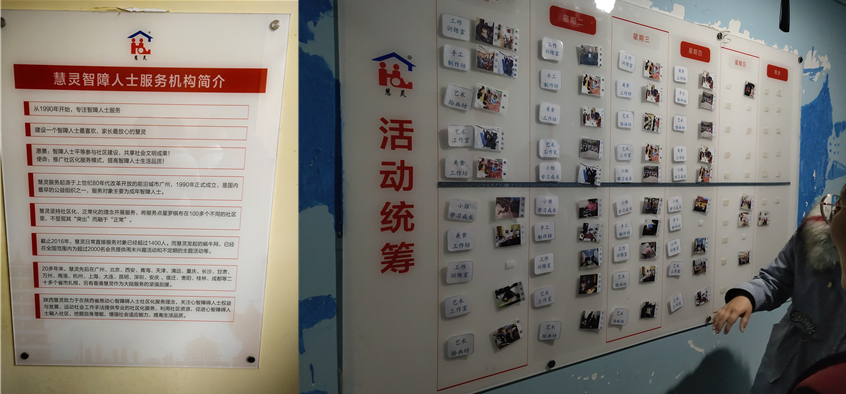慧灵阳光家园是一家专为智力障碍人士服务的社区服务机构。志愿者们向孩子们进行自我介绍,并主动接近孩子们,鼓励他们用不同的方式表达自己。在志愿者和专业老师的引导下,孩子们也慢慢地自我介绍。有些孩子因为语言障碍而不做声,志愿者们用画画的方式向他们问好。