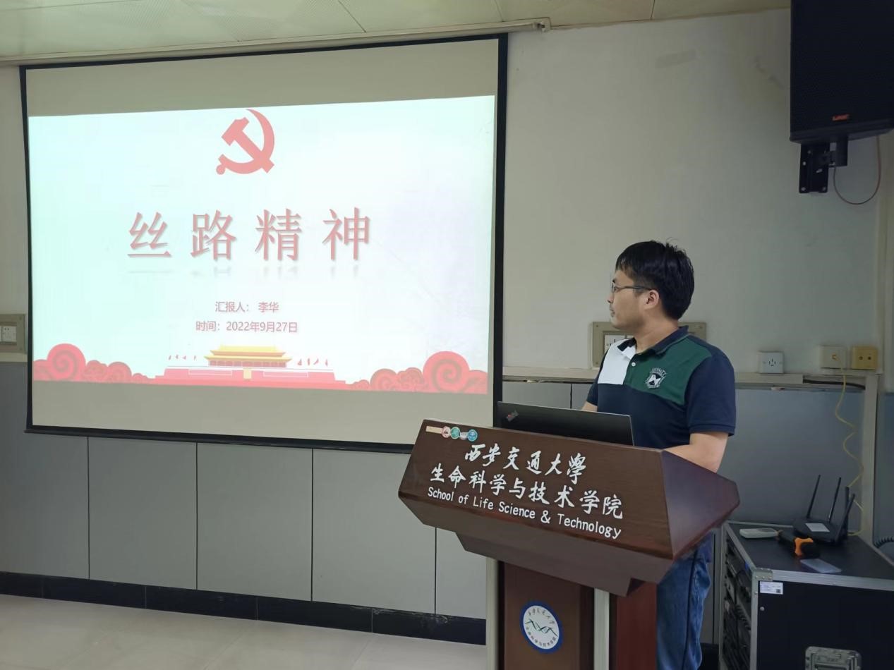微党课环节,李华同志分享了中国共产党人精神谱系的伟大精神——“丝路精神”的内涵,新时期丝路精神集中体现了中华民族爱好和平、讲究和睦、追求和谐的民族风格,彰显了中国共产党的天下情怀、价值追求和使命担当。共建“一带一路”已成为我国参与全球开放合作、改善全球经济治理体系、促进全球共同发展繁荣、推动构建人类命运共同体的中国方案。