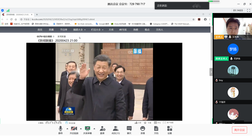 4月22日,习近平总书记莅校视察交大西迁博物馆,并发表重要讲话。习近平总书记在讲话中指出,“西迁精神”的核心是爱国主义,精髓是听党指挥跟党走。根据学校及学院党委部署安排,生命学院团工委通过线上会议的形式,组织全体学生深入学习总书记莅校视察时的重要讲话。同学们纷纷表示要在之后的科研工作中弘扬西迁精神,作好西迁精神新传人。